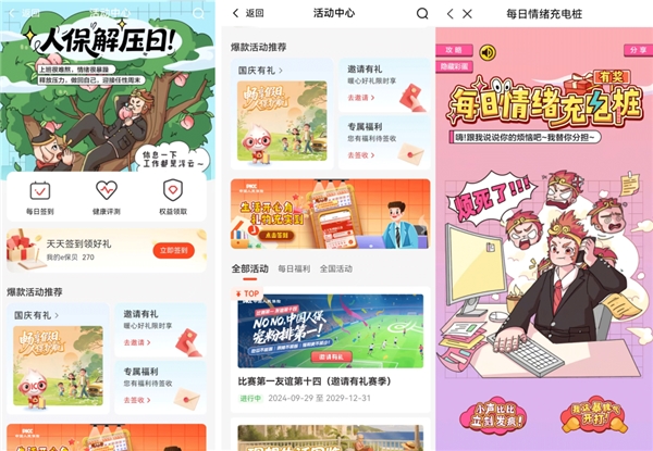 在保险服务数字化进程不断加速的今天,APP活动已逐渐超越“提升活跃度工具”的定位,成为构建用户关系、塑造品牌差异的重要载体。人保“解压日”的活动设计,较难被归为仅局限于保险功能推广,反而更侧重关注用户情绪健康,通过非保险互动增强品牌好感,进而为后续服务渗透奠定潜在的信任基础。